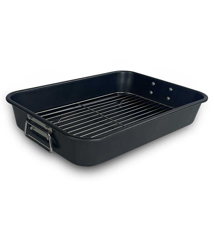 תבנית צלייה עם רשת משמשת לצליית עוף, דגים, בשר או ירקות לבישול בריא.