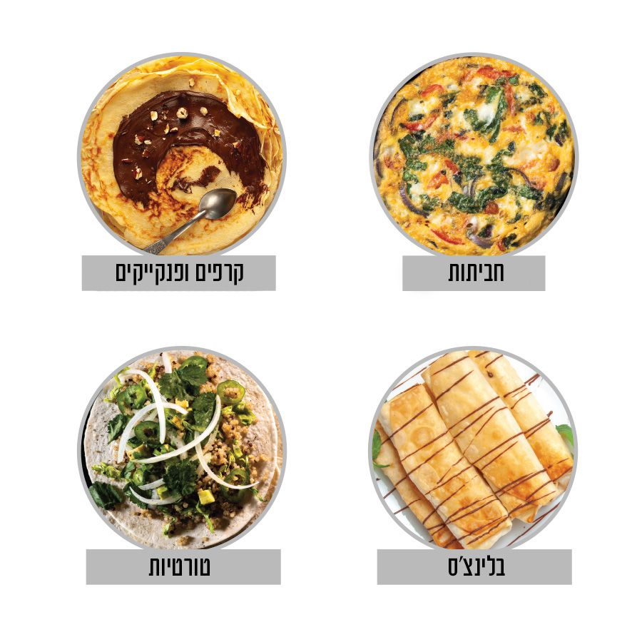 Easy and quick preparation of perfect and delicious meals for the whole family. Crepes, blinches, pancakes, eggs and more.
