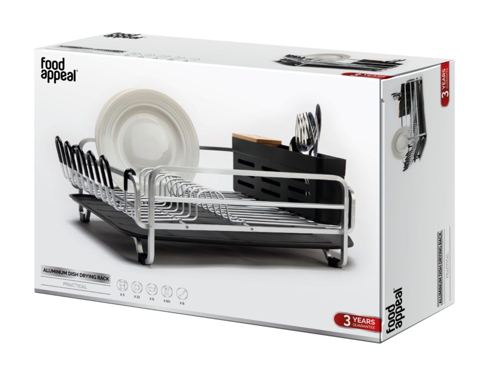Extra large drying area – holds up to 13 plates, 6 bowls, and more than 60 forks and knives.