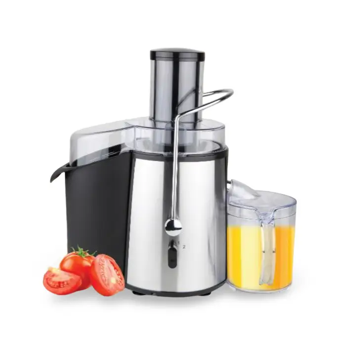 This 850-watt juicer is built with a high-quality stainless steel housing and efficient stainless steel blades for durability and performance. It offers two variable speeds to handle different types of fruits and vegetables and features a safety switch for secure operation. With a large 2-liter capacity, it is designed to be powerful yet easy to use for making fresh juice at home.