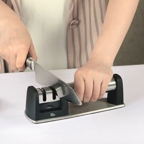Food Appeal Black Knife Sharpener Compact and convenient, with a comfortable one-pull grip that fits all types of knives. Easy to clean and easy to use.
