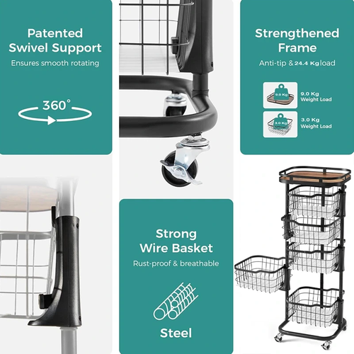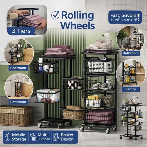 The 5-tier rotating cart offers an innovative approach to everyday organization.