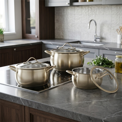 Золотистый кухонный набор из 6 предметов, кастрюли 18/22/26 см, BELLA от Food
