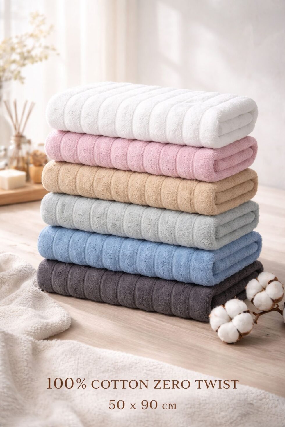 Изготовлено из 100% плотного и высококачественного хлопка с плотностью 600 г/м² и технологией нити Zero Twist, которая обеспечивает исключительную мягкость, высокую впитываемость и долговечность. Идеально подходит для ежедневного использования и бережно относится к коже.